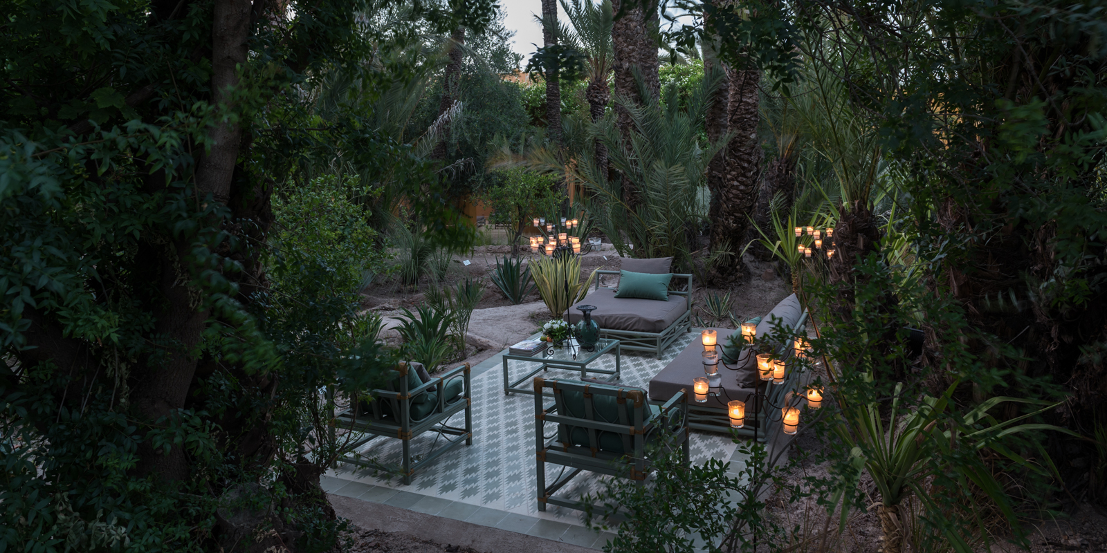 Jnane Tamsna mélange l’élégante décoration d’intérieur de Meryanne Loum-Martin et la sérénité du jardin de trois hectares et demi de Gary Martin. Cette unique propriété dispose de 24 chambres. Leur disposition répartie sur 5 maisons ayant chacune leur piscine et se partageant un terrain de tennis, se prête autant à la location de villas privées avec service hôtelier, qu’à une exclusivité complète pour les événements.